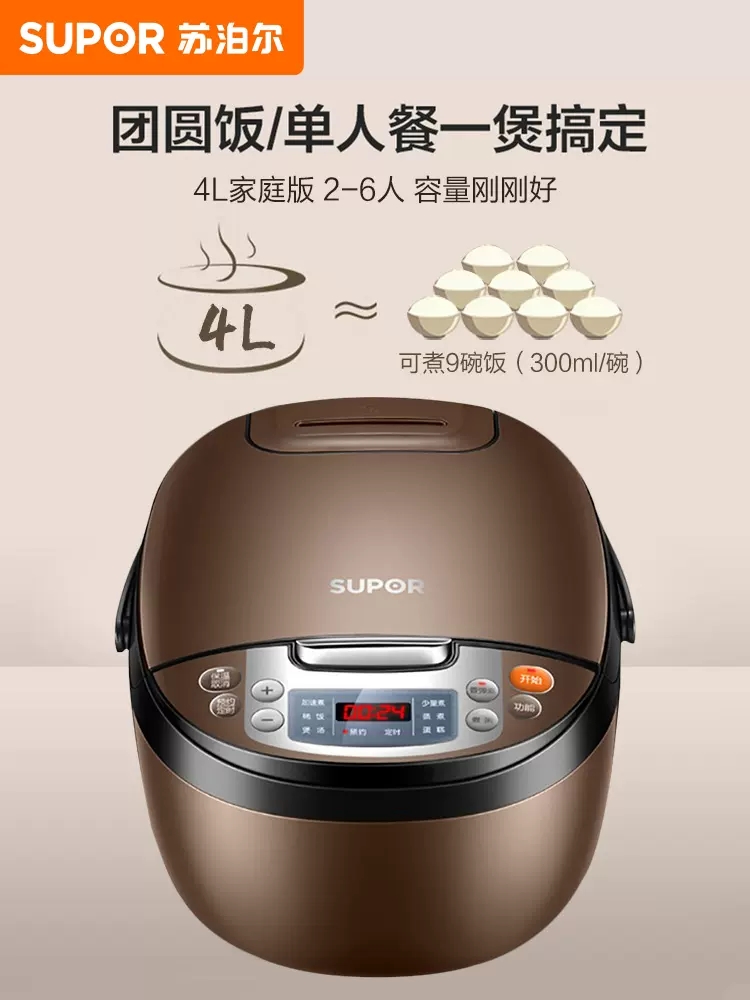 苏泊尔电饭煲家用4L升多功能智能电饭锅大... 当商品进行补货时,我们将以短信、邮件的形式通知您,最多发送一次,不会对您造成干扰。 |